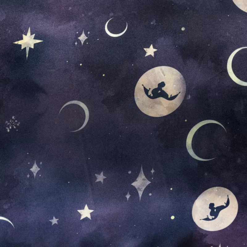 Their wish for a beautiful night’s sleep is granted with this luxurious Jasmine sleep set. The three-piece set features a sleep mask, pillow case and hair scrunchie inspired by Disney’s Aladdin. The shimmering gold sleep mask has star embroidery. The pillow case has a sophisticated black and gold pattern that features silhouettes of Jasmine on a magic carpet ride. The hair scrunchie has an allover moon and star pattern. Ready to give to a special someone or yourself, it comes in an elegant gift box.