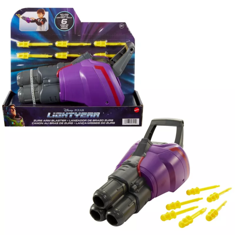 - The bold design is inspired by Zurg’s arm blaster from the movie for realistic play and the 3 projectiles shoot up to 10 feet