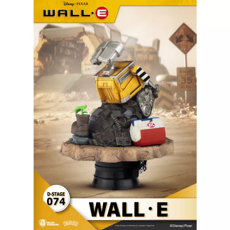 - Sitting on top of a trash hill, Wall-E is seen looking at the stars where he hopes to one day go, carrying his one small pot plant and toolbox.